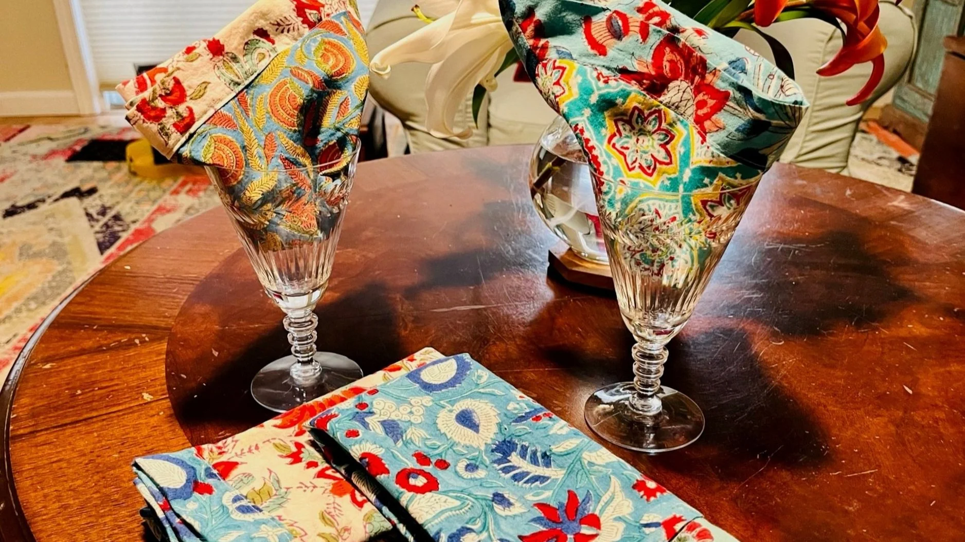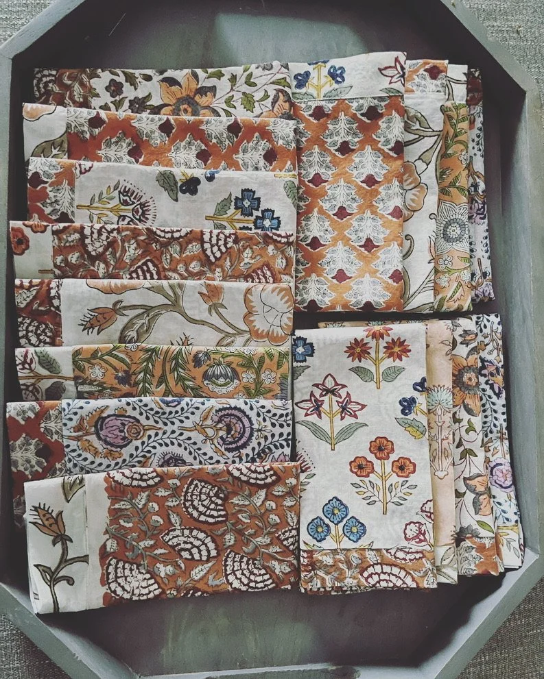 Unique Napkins for the Distinctive Tabletop. Reach Out On Instagram Table Napkins Cocktail Napkins Sustainable. Playful. Festive.Table Napkins Set of 4/$45Cocktail Napkins Set of 4/$30